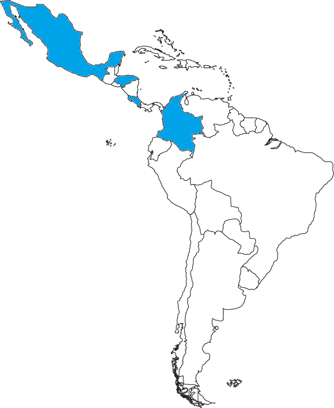 Por ahora cubrimos los siguientes paises: Honduras, Costa Rica, México y Colombia.
